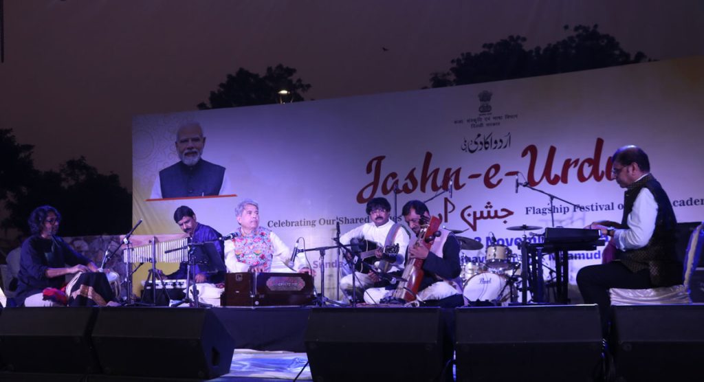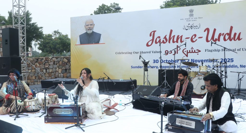 اردو زبان میں جو مٹھاس ہے، وہ دنیا کی دیگر زبانوں میں دیکھنے کو نہیں ملتی۔ یہ ایک ایسی زبان ہے جس نے محبتوں کی خوشبو اور تہذیبوں کے رنگ لیے ہوئے دنیا کے ہر خطے میں اپنی پہچان مستحکم کی ہے۔ اردو کی یہی حلاوت غیر اردو داں طبقے کو اردو زبان و ادب سے قریب کرتی ہے اور اس کی چاشنی سے ہر کوئی سرشار ہونا چاہتا ہے۔اس میں کوئی شک نہیں کہ موجودہ عہد میں اردو زبان و ادب کے فروغ و ترقی کے سلسلے میں اردو اکادمی، دہلی کی کوششیں لافانی و لاثانی رہی ہیں۔ اکادمی نے گزشتہ کچھ سالوں سے اردو کو اس کے ورثے اور ثقافتی قدروں کے ساتھ ادبی محفلوں کے ذریعے نئی نسل تک پہنچانے کی کامیاب اور مؤثر کوشش کی ہے۔چنانچہ ہر سال کی طرح امسال بھی اردو اکادمی، دہلی نے وزارتِ فن، ثقافت و السنہ، حکومتِ دہلی کے زیرِ اہتمام چار روزہ عظیم الشان ’’جشنِ اردو‘‘ کا انعقاد سندر نرسری (عظیم باغ) میں کیا۔ یہ جشن 30 اکتوبر سے شروع ہو کر 2 نومبر تک ہمایوں کے مقبرے کے قریب سندر نرسری کے ایمفی تھیٹر میں جاری ہے۔اس جشن کے تحت روزانہ دوپہر بارہ بجے سے رات آٹھ بجے تک مختلف پروگرام پیش کیے جا رہے ہیں، جن میں عالمی شہرت یافتہ فنکاروں کو سننے اور طلبہ کے ادبی مقابلوں کو دیکھنے کا بھرپور موقع فراہم کیا جا رہا ہے۔ اس وراثتی میلے میں اردو زبان و ادب سے دلچسپی رکھنے والوں کے لیے پروگراموں کے علاوہ کتابوں، کیلی گرافی، پینٹنگز، ہاتھ کی دستکاری اور دیگر اشیاء کے اسٹالز بھی لگائے گئے ہیں۔پہلے دن کا پہلا پروگرام ’’غزل سرائی‘‘ کے مقابلے کا تھا، جس میں دہلی کی مختلف یونیورسٹیوں کے طلبہ و طالبات نے معروف شعرا کی منتخب غزلوں کو اپنی مترنم آواز میں پیش کیا۔ ججوں کی حیثیت سے پروفیسر ابوبکر عباد اور ڈاکٹر شعیب رضا خاں وارثی شامل تھے۔ انھوں نے اس مقابلے میں ہارون رشید (جامعہ ملیہ اسلامیہ) کو اول، زینب اشفاق (دہلی یونیورسٹی) کو دوم، رفیق طلحہ (دہلی یونیورسٹی) کو سوم، جبکہ اریبہ خانم (دہلی یونیورسٹی) کو اعزازی انعام کا حقدار قرار دیا۔اس پروگرام سے لے کر آخری پروگرام تک نظامت کی ذمہ داری ریشما فاروقی، اطہر سعید اور سلمان سعید نے بخوبی نبھائی۔غزل سرائی کے بعد دوسرا پروگرام ’’صوفی نغمے‘‘ کے عنوان سے تھا، جس میں دہلی گھرانے کی معروف فنکارہ ناز وارثی نے مختلف نغموں کو بڑے خوبصورت اور مترنم انداز میں پیش کیا۔ انھوں نے ’’دل دیا ہے سرور بھی دے دیا، آنکھ دیا ہے تو نور بھی دے دیا‘‘ سے محفل کا آغاز کیا۔ اس کے بعد انھوں نے کئی معروف قوالیاں اور روحانی نغمے پیش کیے۔صوفی نغموں کے بعد ’’بہارِ غزل‘‘ کے موضوع پر تیسری محفل سجائی گئی، جس میں دہلی کی معروف فنکارہ ڈاکٹر اوشین بھاٹیہ نے جدید و قدیم غزلوں کو اپنی مترنم آواز میں پیش کیا۔ انھوں نے اپنے پروگرام کا آغاز معروف شاعر ناصر کاظمی کی غزل ’’وہ دل نواز ہے لیکن نظر شناس نہیں، مرا علاج مرے چارہ گر کے پاس نہیں‘‘ سے کیا۔ ان کی مخمور و مسحور آواز نے سامعین کو جھومنے پر مجبور کر دیا۔ علاوہ ازیں انھوں نے احمد فراز کی غزل ’’رنجش ہی سہی دل ہی دکھانے کے لیے آ، آ پھر سے مجھے چھوڑ کے جانے کے لیے آ‘‘ اور امیر خسرو کی مشہور غزل ’’چھاپ تلک سب چھینی رے موسے نیناں ملا کے‘‘ بھی پیش کیں۔غزل کے بعد ’’صوفی محفل‘‘ کے عنوان سے چوتھے پروگرام کا اہتمام کیا گیا، جس میں دہلی گھرانے کے معروف قوال گروپ ایم ایس نظامی برادران نے مشہور زمانہ قوالیاں اور نغمات گا کر سماں باندھ دیا۔ انھوں نے پروگرام کا آغاز معروف قوالی ’’بھر دو جھولی میری یا محمدؐ، لوٹ کر میں نہ جاؤں گا خالی‘‘ سے کیا۔ اس کے بعد انھوں نے مختلف کلام پیش کر کے سامعین کو محظوظ و مسحور کر دیا۔شام ڈھلتے ہی سامعین کی تعداد میں خاطر خواہ اضافہ ہونے لگا۔ اسی دوران بالی وُڈ کے معروف گلوکار سریش واڈیکر کی فنکاری میں پانچویں پروگرام ’’سرمئی شام‘‘ کا آغاز ہوا۔ سریش واڈیکر نے اپنی مخملی اور پر کیف آواز میں نہایت خوبصورت غزلیں اور نغمات پیش کیے۔ ان کی پیشکش عمدہ اور آواز مخمور و مسحور تھی، جس نے س